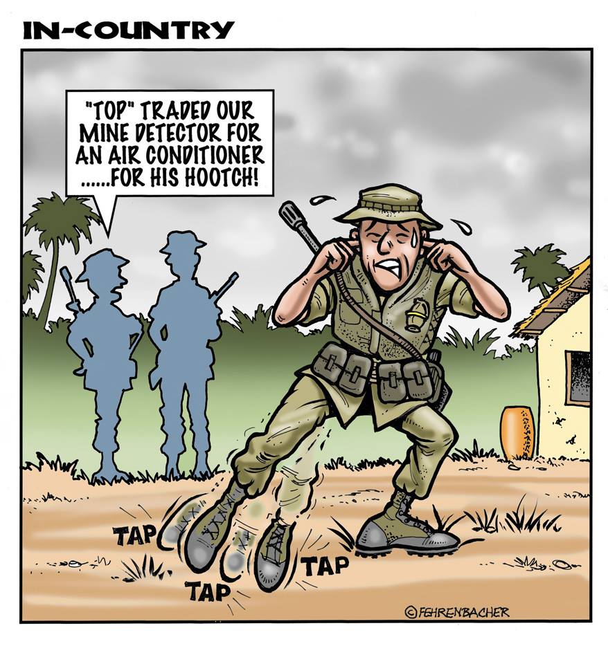 Phil enlisted in the Army in 1965 where he served for years in Vietnam. He became a graphic designer and has worked for the state of Oregon for 26 years. He retired in 2003 and started the Cartoon "In-Country". The cartoons reflect his experiences during his tour of duty in South Vietnam.